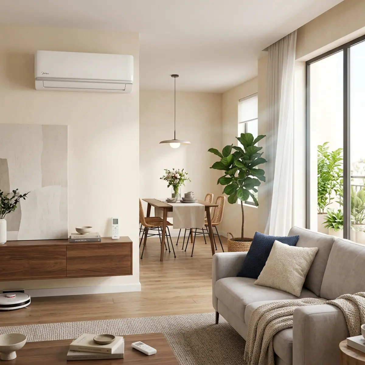 Tecnología Inverter Quattro: La tecnología Inverter Quattro de Midea regula automáticamente la potencia del compresor según la demanda de temperatura del ambiente, evitando los ciclos bruscos de encendido y apagado de los aires acondicionados tradicionales. El resultado: menor consumo eléctrico, mayor estabilidad térmica, menos desgaste del equipo y un funcionamiento mucho más silencioso.