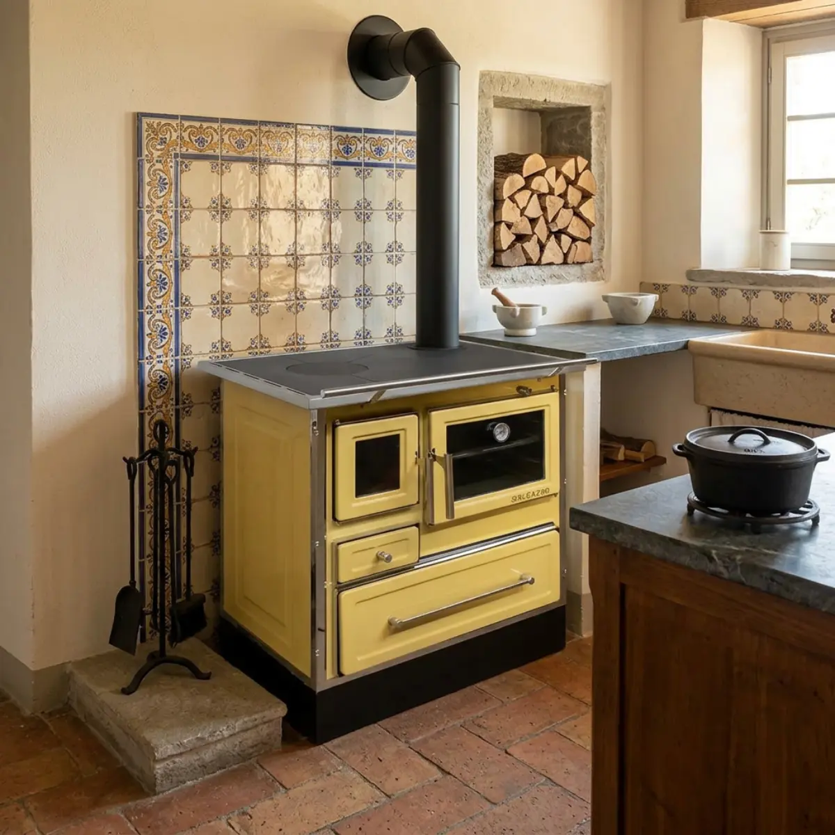 Diseño mejorado con mejor visibilidad: La línea MZ destaca por su diseño mejorado, que permite una visión directa tanto de la llama como del horno, facilitando el control de la cocción sin necesidad de abrir la puerta. Su vibrante color amarillo le aporta personalidad y calidez visual, convirtiéndola en el centro de atención de cualquier cocina rural o de estilo retro-moderno.