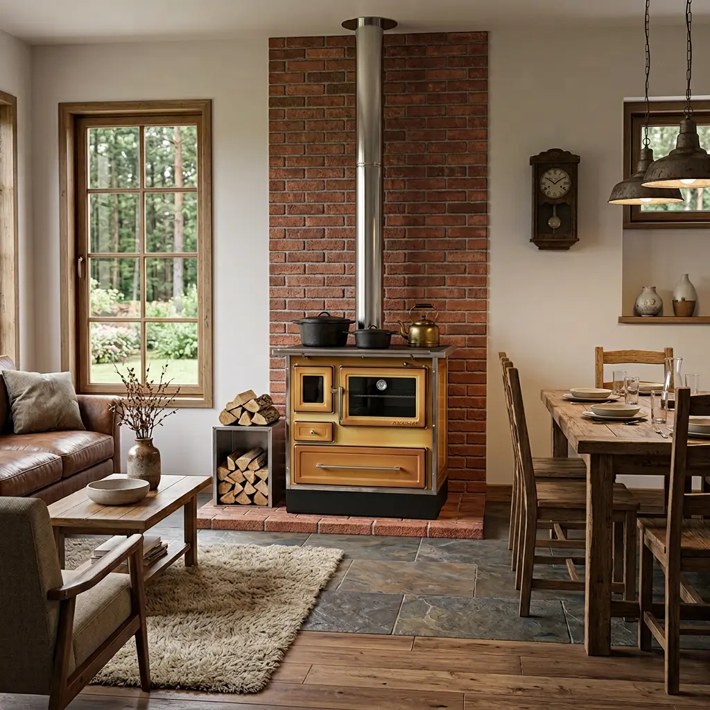 El modelo MZ de la Línea Calbuco está inspirado en las cocinas tradicionales a leña, pero con un toque moderno gracias a su zócalo realzado que le da elegancia sin perder su esencia. Su diseño mejorado permite una visión directa tanto de la llama como del horno, facilitando la cocción sin necesidad de abrir la puerta.