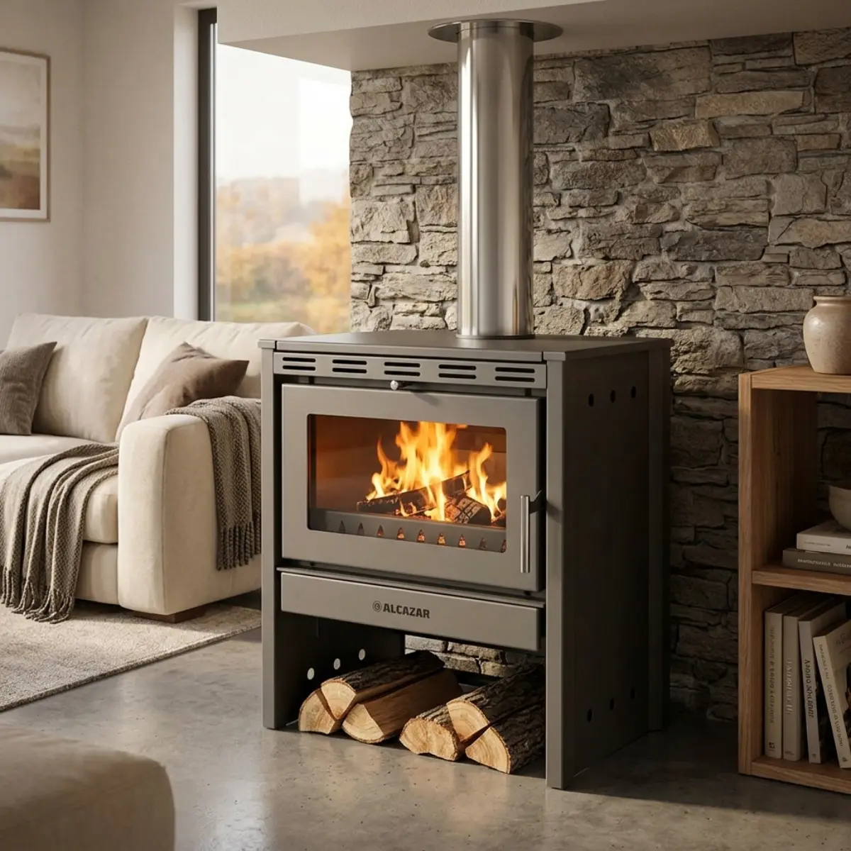 Modelo Bavara – Línea Alpina de Alcázar Calor robusto y acogedor, inspirado en los Alpes Descubre el Modelo Bavara, una estufa de combustión lenta diseñada para entregar un calor envolvente y tradicional. Inspirada en los Alpes alemanes, su diseño de líneas rectas y definidas refleja la fuerza del estilo alpino, perfecto para combatir el frío con un ambiente cálido y acogedor Su fuego visible a través del cristal termocerámico SCHOTT ROBAX, resistente hasta 800° C, crea un espectaculo hipnotizante de llamas que transforma cualquier espacio en un refugio cálido y confortable. Con el fin de enriquecer la experiencia, el modelo Bavara contiene: Doble cámara, optimizando la eficiencia térmica Diseño robusto y elegante, ideal para amplios espacios Tiraje frontal y lateral, brindando mayor flexibilidad en la instalación Revestimiento interior de vermiculita, mejorando la retención y distribución del calor Diseñada con la esencia del sur de Chile, la línea Alpina de Alcázar es la favorita de quienes buscan calefacción potente, confiable y duradera. Producto chileno hecho con la experiencia y el cariño de la gente del sur. INFORMACIÓN TÉCNICA Alto: 88 cm Ancho: 85 cm Profundidad: 53 cm Peso: 155 kg Potencia: 30,5 KW = 26.225 Kcal Rango Calefacción: Sobre 250 m² Alimentación: Leña Diámetro del cañón: 6" Garantía mínima legal: 6 meses.