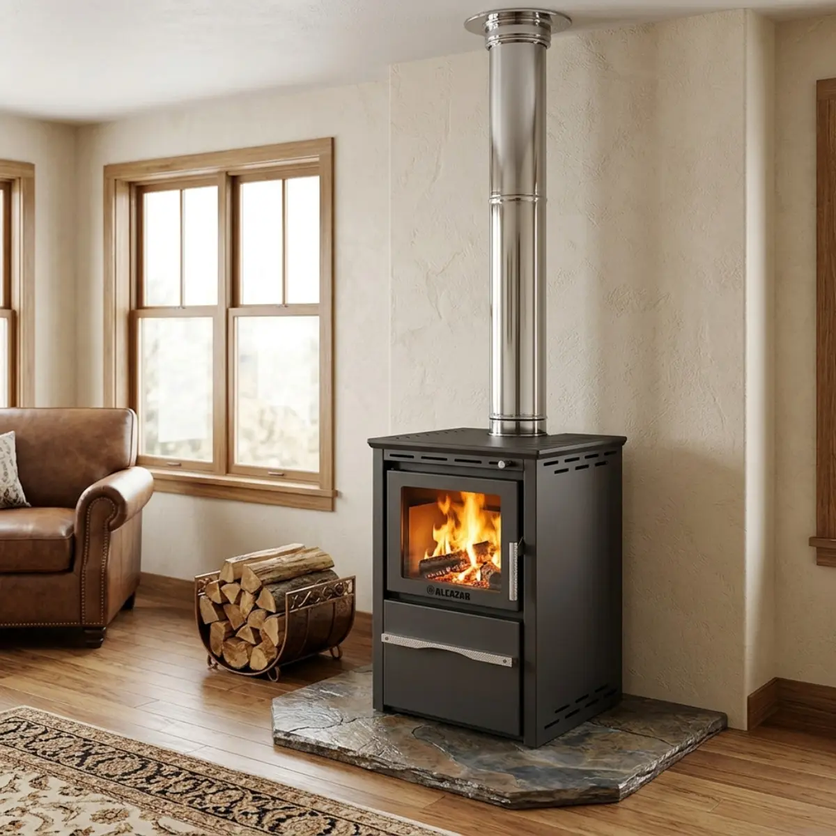 Modelo 480 – Línea Patagonia de Alcazar Calidez y tradición inspiradas en el Sur de Chile Descubre el Modelo 480, una estufa de combustión lenta diseñada para ofrecer máximo rendimiento y adaptabilidad en cualquier ambiente. Desarrolladas para satisfacer las necesidades del Sur de Chile, proporciona una calefacción potente y segura, ideal para climas exigentes. Su diseño minimalista y moderno se integra fácilmente en distintos espacios, garantizando durabilidad y eficiencia. El fuego visible a través de un cristal de alta resistencia térmica y su riguroso proceso de certificación aseguran una experiencia segura y confiable. Con el fin de enriquecer su experiencia, el Modelo 480 contiene: Doble cámara, optimizando la eficiencia térmica. Diseño moderno y funcional, adaptable a cualquier ambiente. Cajonera multiuso, brindando espacio adicional para almacenamiento. Revestimiento interior de vermiculita, mejorando la retención y distribución del calor. Diseñado con la esencia del Sur de Chile, la línea Patagonia de Alcázar es sinónimo de calor acogedor y eficiencia. Producto hecho con la experiencia y el cariño de la gente del sur. INFORMACIÓN TÉCNICA Alto: 87,8 cm Ancho: 53,1 cm Profundidad: 52 cm Peso: 120 kg Potencia: 9,3 KW = 7.996 Kcal Rango de calefacción: 160 m² Diámetro del cañón: 6" Garantía mínima legal: 6 meses.