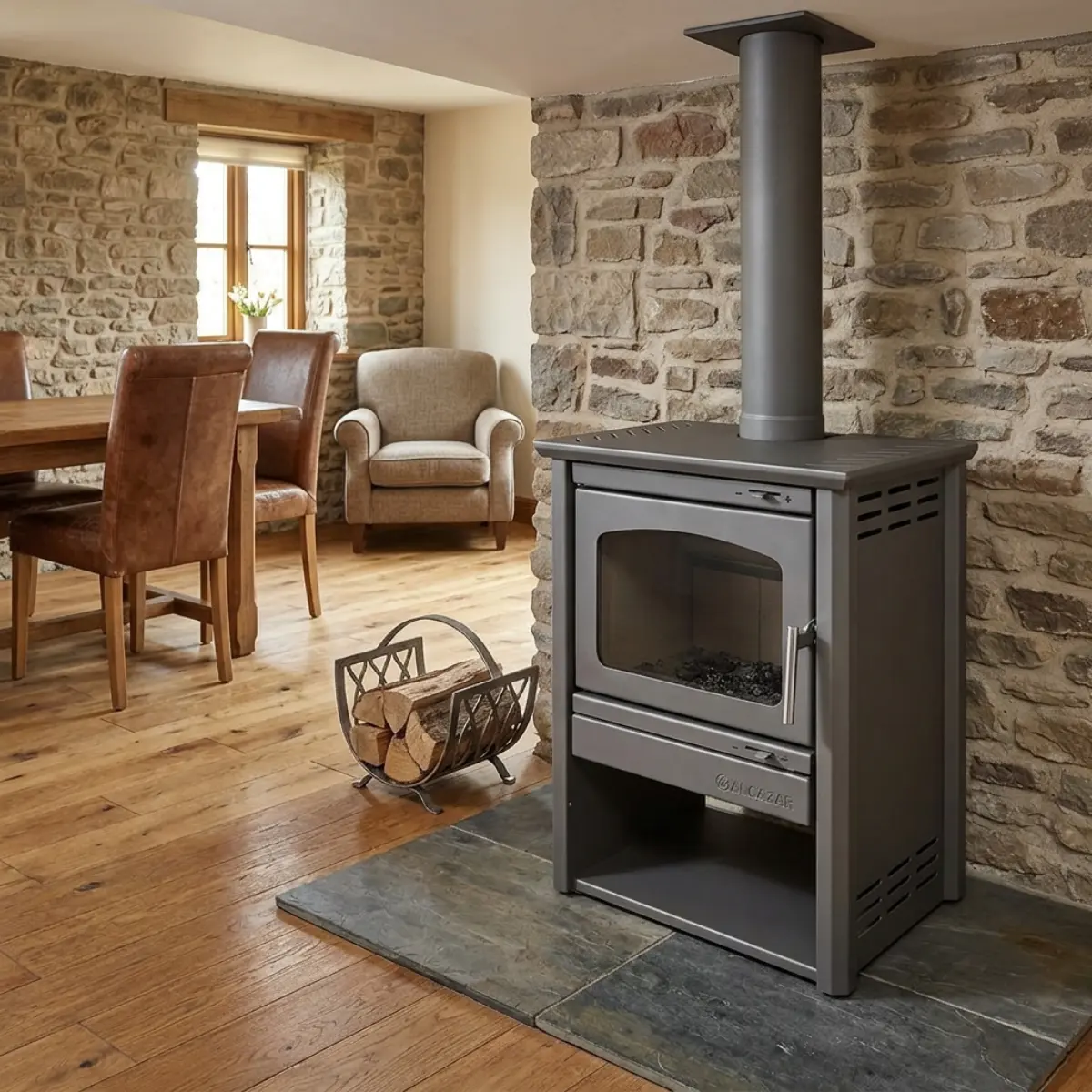 Modelo 600 – Línea Patagonia de Alcazar La más grande de la Patagonia: Poder, tradición y calidez para tu hogar Patagonia 600, la estufa de combustión lenta más imponente de la Línea Patagonia de Alcazar. Diseñada para quienes buscan máxima potencia de calefacción sin perder el estilo acogedor y funcional que caracteriza a nuestra línea. Con su robusto tamaño y mayor capacidad térmica, el Modelo 600 es ideal para espacios amplios, brindando un calor envolvente y eficiente. Con el fin de enriquecer la experiencia, el Modelo 600 contiene: Doble cámara, optimizando la eficiencia térmica. Manillas de acero inoxidable, aportando durabilidad y un toque moderno. Revestimiento interior de vermiculita, mejorando la retención y distribución del calor. Cristal de alta resistencia térmica, para disfrutar del espectáculo del fuego con total seguridad. Cenicero extraíble, facilitando la limpieza y el mantenimiento diario. Diseñada con la esencia del Sur de Chile, la línea Patagonia de Alcazar es sinónimo de tradición, eficiencia y calor de hogar. Producto chileno hecho con la experiencia y el cariño de nuestra gente. INFORMACIÓN TÉCNICA Alto: 80,2 cm Ancho: 62,7 cm Profundidad: 46,7 cm Peso: 106 kg Potencia: 12 KW = 10.320 Kcal Rango de calefacción: Hasta 200 m² Diámetro del cañón: 6" Garantía mínima legal: 6 meses.