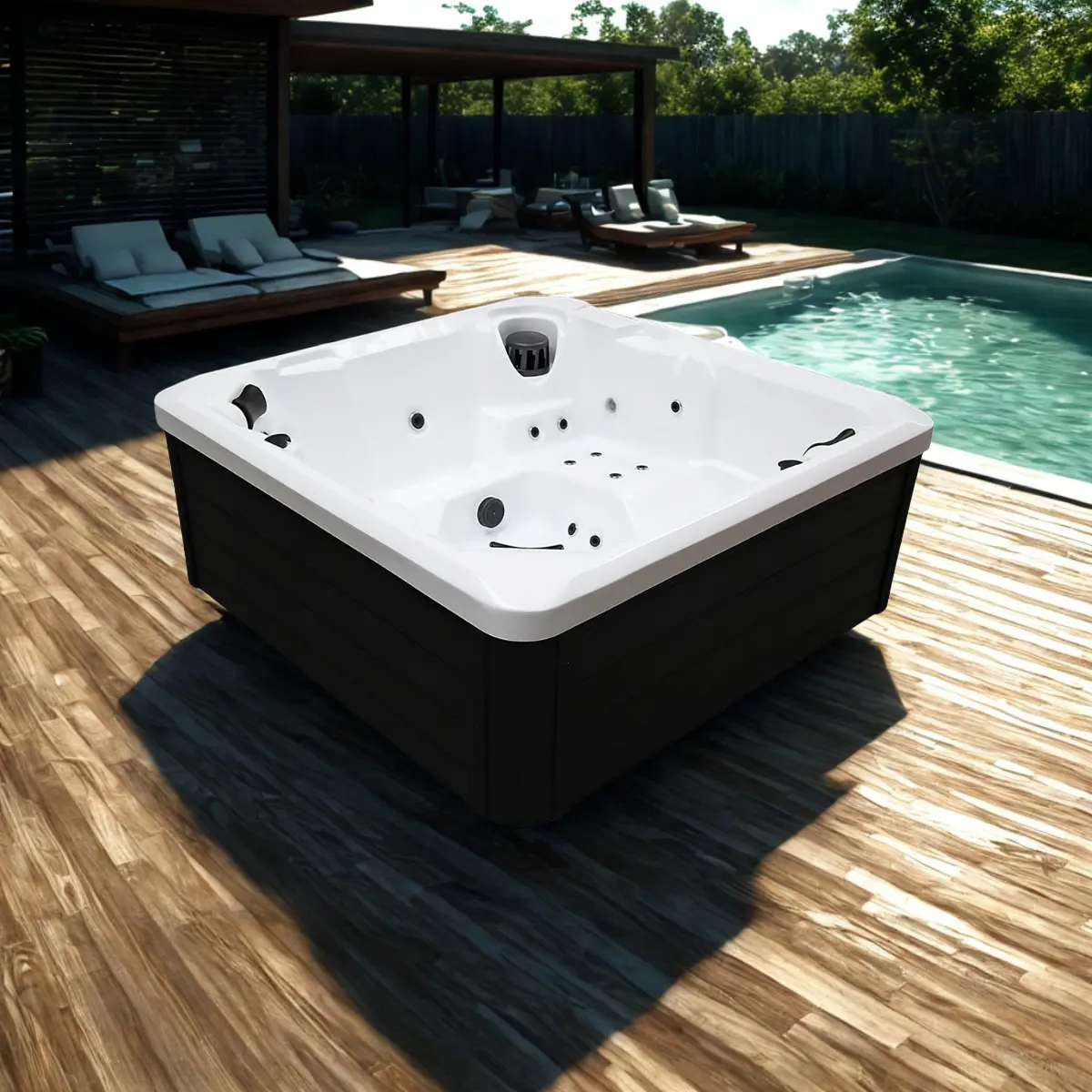 198x198x77cm – 6 plazas Colección INISSIA Spa Si deseas comenzar a experimentar Hidroterapia, cromoterapia todos los días del año en tu hogar o el lugar que elijas. La colección INISSIA , será parte de esta experimentación con baños terapéuticos todos los días del año si lo deseas. Todos los spas con sistema Plug & Play. Elije el que mas se acomode a tu zona de confort.