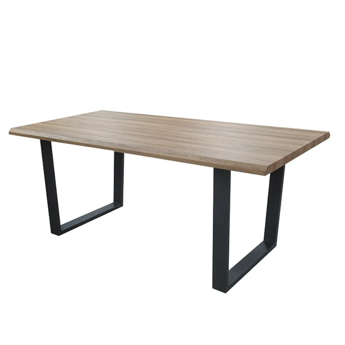 Mesa Ranch – Estilo moderno con presencia: La Mesa de Comedor Ranch se distingue por su cubierta enchapada en termolaminado color café y su soporte de patas metálicas en color negro, una combinación que entrega un look industrial-moderno muy actual. Con sus generosos 180 cm de ancho, ofrece amplio espacio para acomodar a 6 personas con comodidad, ideal para almuerzos familiares o cenas con amigos.